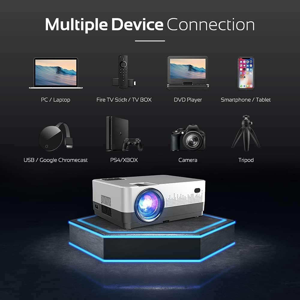 Adopting 2021 latest Led light technology projects a clear image 8500Lux (Over 200 ANSI), 4.3'' lcd screen of our native 720p wifi projector makes it 30% more brighter and sharper than comparable 4’’ 720p native projectors on the market, providing you with probably the best home cinema experience. Also this technology saves your eyes while still allowing you to enjoy movies, sports, TV.