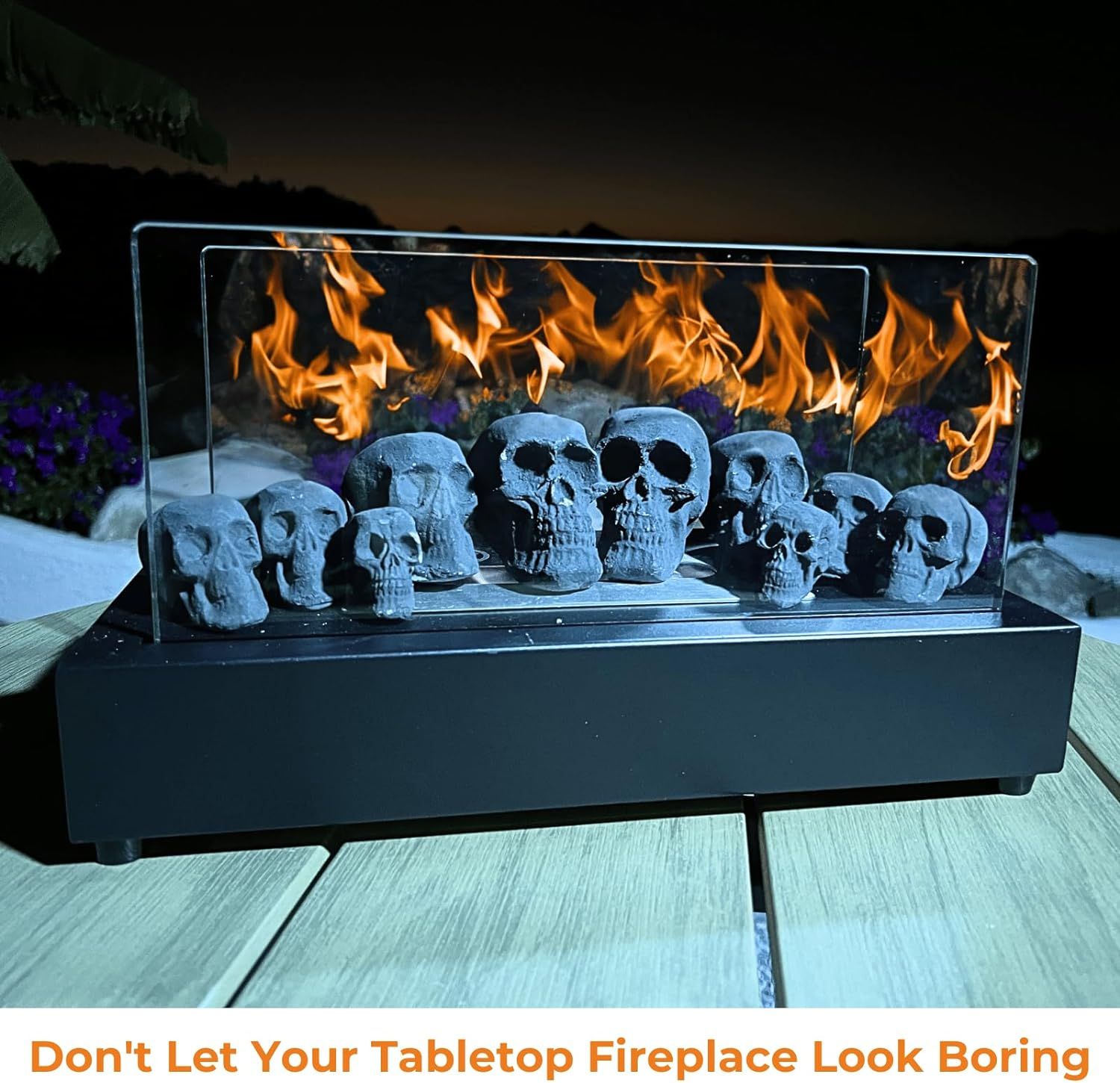 I highly recommend our skull fire logs to you. It's really, really, really cool!It has a total of 4 sizes, the largest is no bigger than a palm, the smallest is just a thumb. Therefore, his adaptability is particularly strong, it can be used in candlesticks, alcohol stoves, and can also be combined in fire pits and fireplaces, wherever it is sure to be the focus. Each one of our skull firepit heads is handmade, you can fully feel the vividness of their shapes, each one is very similar, but they are not the same, you put them there, the shapes are very vivid. We specially set 7/10/12 as a group, making it very easy to put together, you can just buy one to use the size you need, but also try different sizes of wonderful combinations, it will definitely decorate your party, let everyone marvel at your creativity.