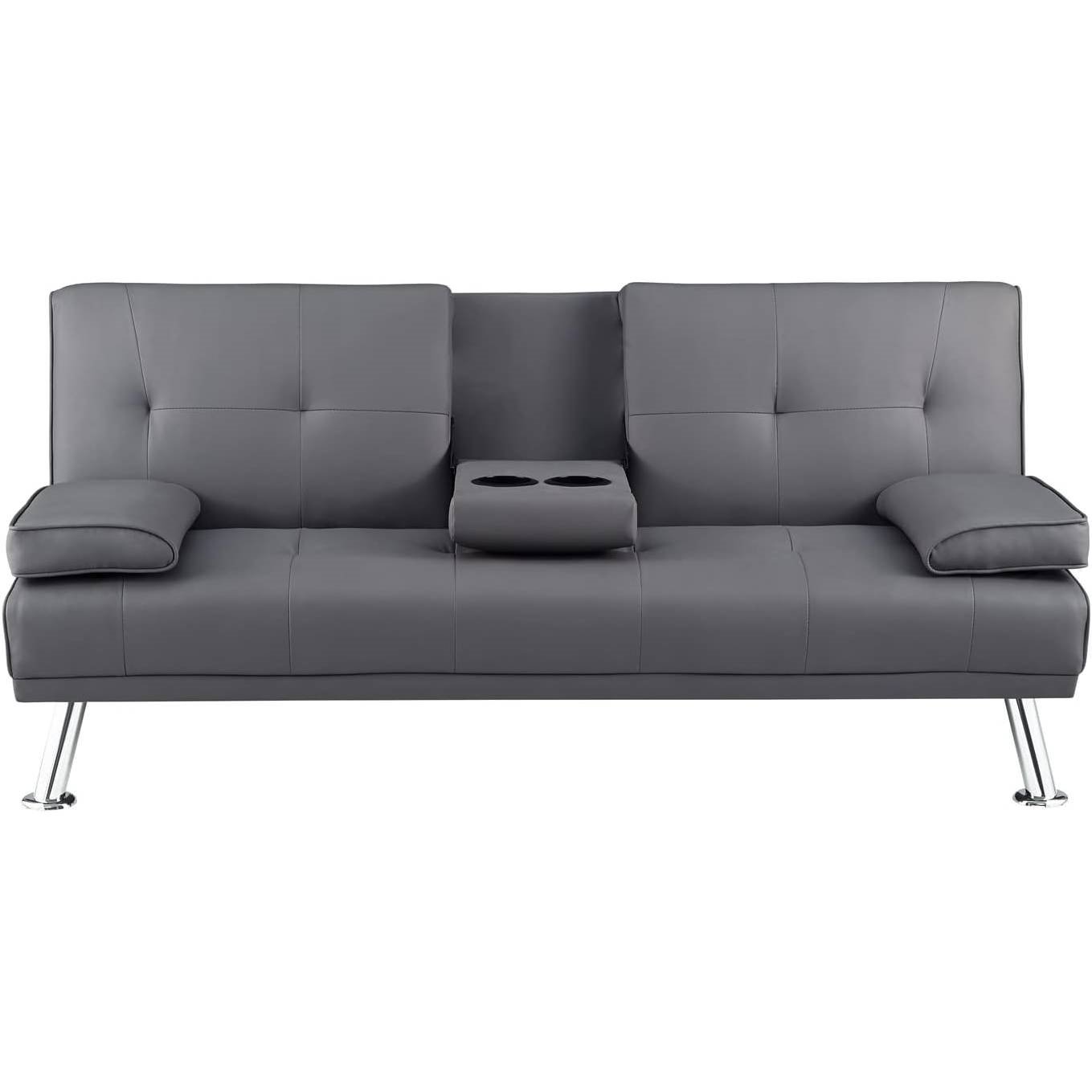 Modern Futon Sleep Sofa Bed Couch in Grey Faux Leather with Cup Holder Modern Futon Sleep Sofa Bed Couch in Grey Faux Leather with Cup Holder Modern Futon Sleep Sofa Bed Couch in Grey Faux Leather with Cup Holder Modern Futon Sleep Sofa Bed Couch in Grey Faux Leather with Cup Holder Modern Futon Sleep Sofa Bed Couch in Grey Faux Leather with Cup Holder