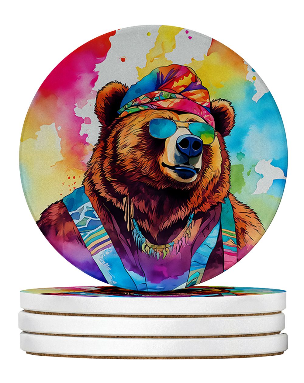 Home > Hippie Animal Grizzly Bear Large Sandstone Coasters Pack of 4 Absorbent Round Coasters Decor Gifts for Men or Women, 4 in, Multicolor