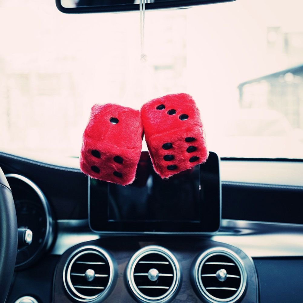 Creative Plush Dice Hanging Ornament for Car Rearview Mirror Home Décor, Red