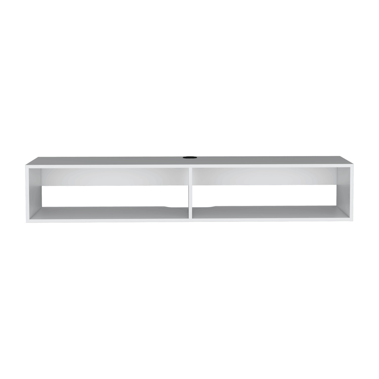 Elevate your living room with the modern and stylish Floating TV Stand Moore. Designed to seamlessly blend with your decor, this floating TV stand is crafted from white manufactured wood, offering both functionality and elegance. The Floating TV Stand Moore includes two spacious shelves (9.2"H x 8.8"D x 28.6"W) perfect for your media devices, decor, or storage needs. The built-in cable hole ensures neat and organized cable management, keeping your space clutter-free. Perfect for mounting your TV and creating a clean, contemporary look in your living room.Dimensions: Height: 10.4'Width: 59.1' Depth: 12.6'Furniture Type: Ready to assemble (full assembly required).Certifications: CARB phase II compliant – TSCA Title VI Compliant.Warranty: 1-year warranty coverage in wooden parts- 1-year warranty coverage in hardware pieces since its manufacturing date is found in the lot number printed in the product box.Shipment details: Free shipping to the 48 contiguous states - delivery time: Between 2 and 5 days, depending on the customer's location, season, and weather factors.Other details: This product does not include decorative or background elements; Check that the box is in good condition and well packed and check with the help of the manual that the corresponding parts have been included; For more information regarding warranty, shipment details, cancellations, returns & replacement parts go to the bottom section of our website to learn more; Installation & Assembly Instructions included.