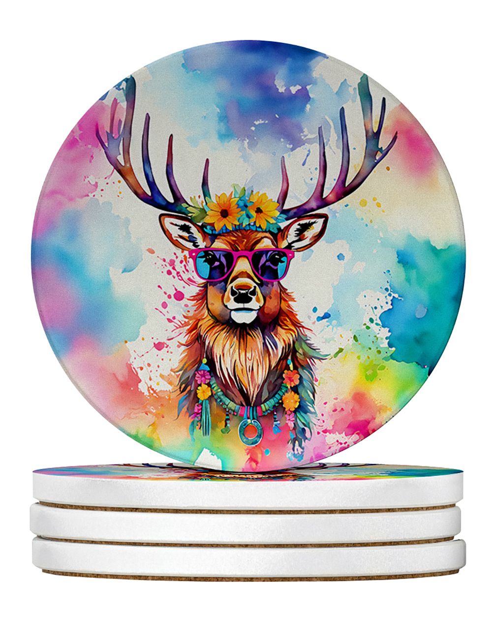 Home > Hippie Animal Stag Deer Large Sandstone Coasters Pack of 4 Absorbent Round Coasters Decor Gifts for Men or Women, 4 in, Multicolor