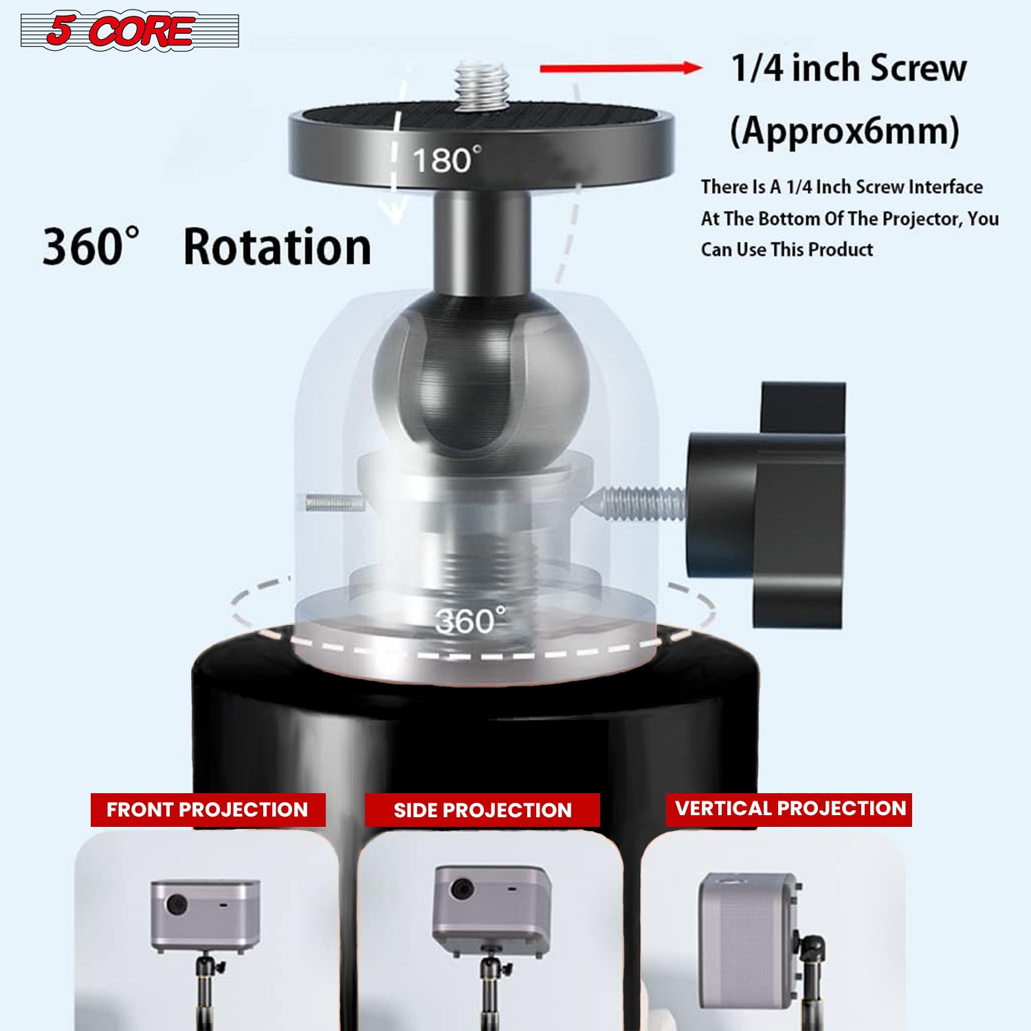 4.Flexible Ball Head provides a 360?rotation and 90?tilt. Allows you to finetune projection angles.