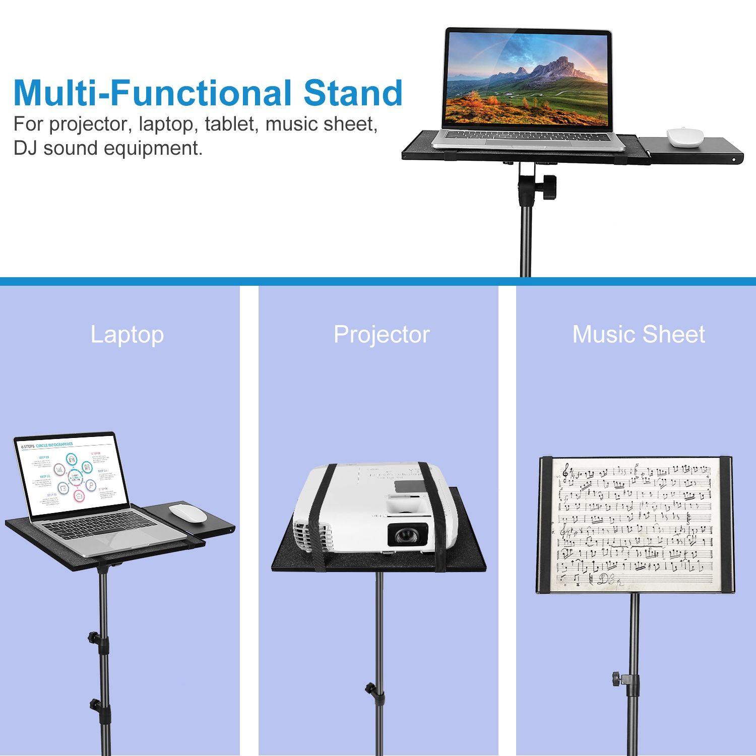 ** Universal Compatibility*:The tray holder measures 11.22x15.16 inches. This universal projector tripod stand supports for laptops,projectors,recorders,music notes,books,sound media DJ equipment,etc.. Perfect for home theaters,stage or studio,classroom,presentation,speeches.