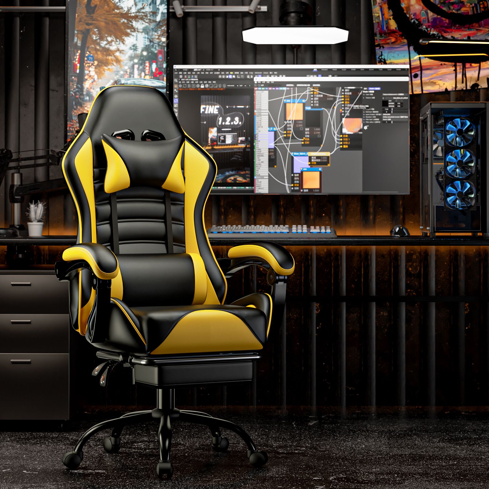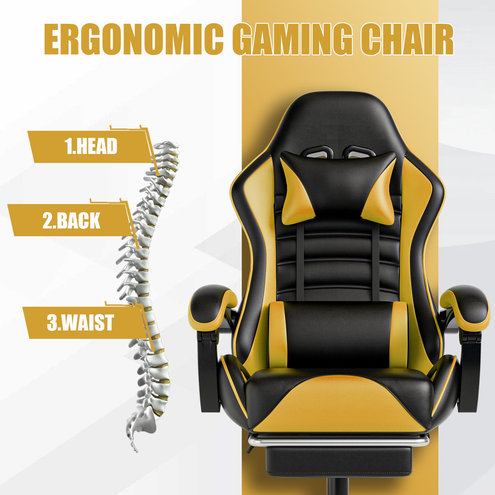 1.Computer gaming chair with premium pu Leather, handcrafted, waterproof, stain resistant, and easy to clean. The gaming desk chair has built-in fabric and memory foam to ensure that you can still provide better cushioning and support under prolonged use, giving you a comfortable sitting experience like a mattress or sofa.