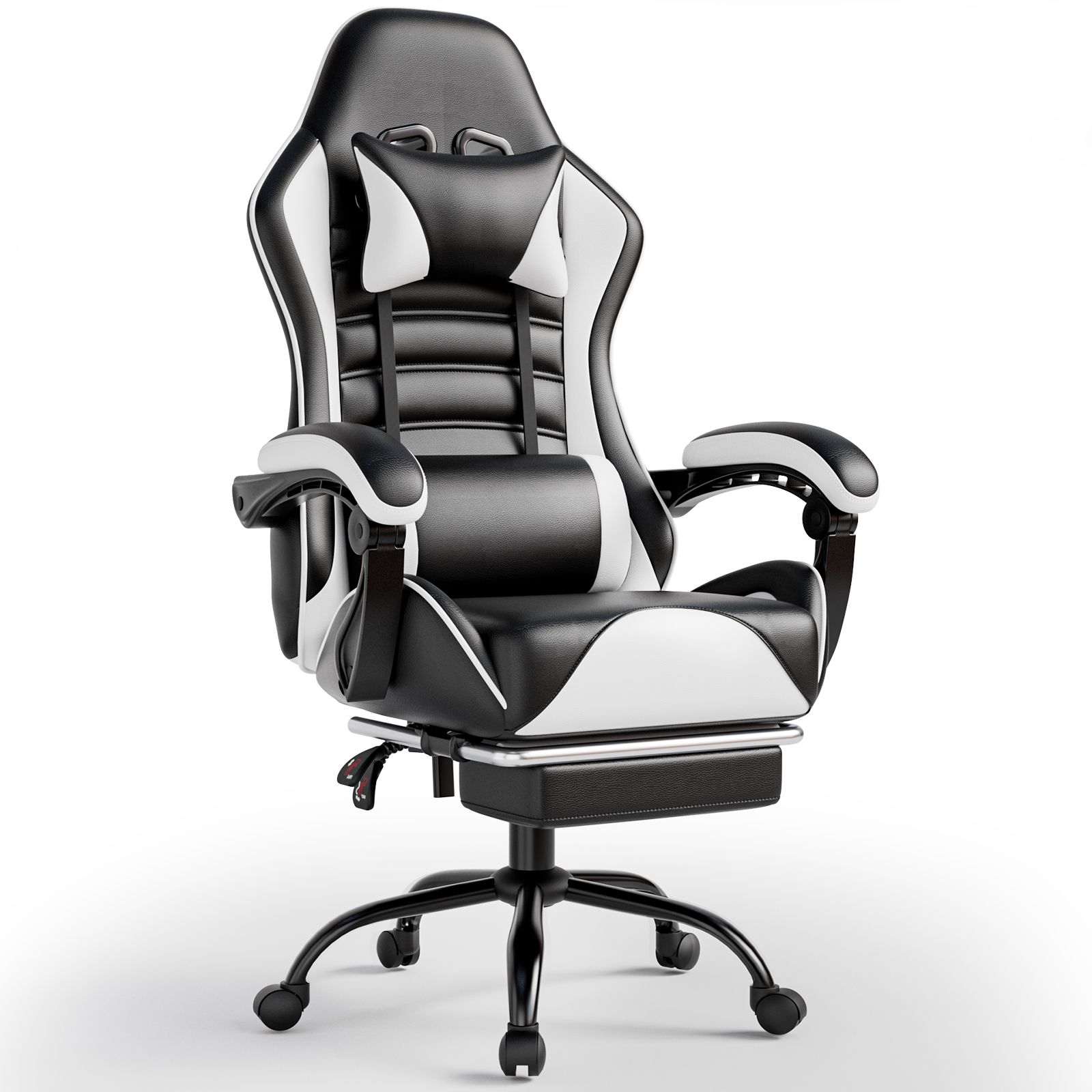 2.Our gaming computer chair is extremely stable with its sturdy one-piece alloy frame and heavy-duty anti-tip axle. The BIFMA-certified heavy-duty metal base coupled with 360-degree swiveling and smooth-rolling rubber castors allow you to effortlessly move the pc gaming chair without making any noise or scratching the floor.