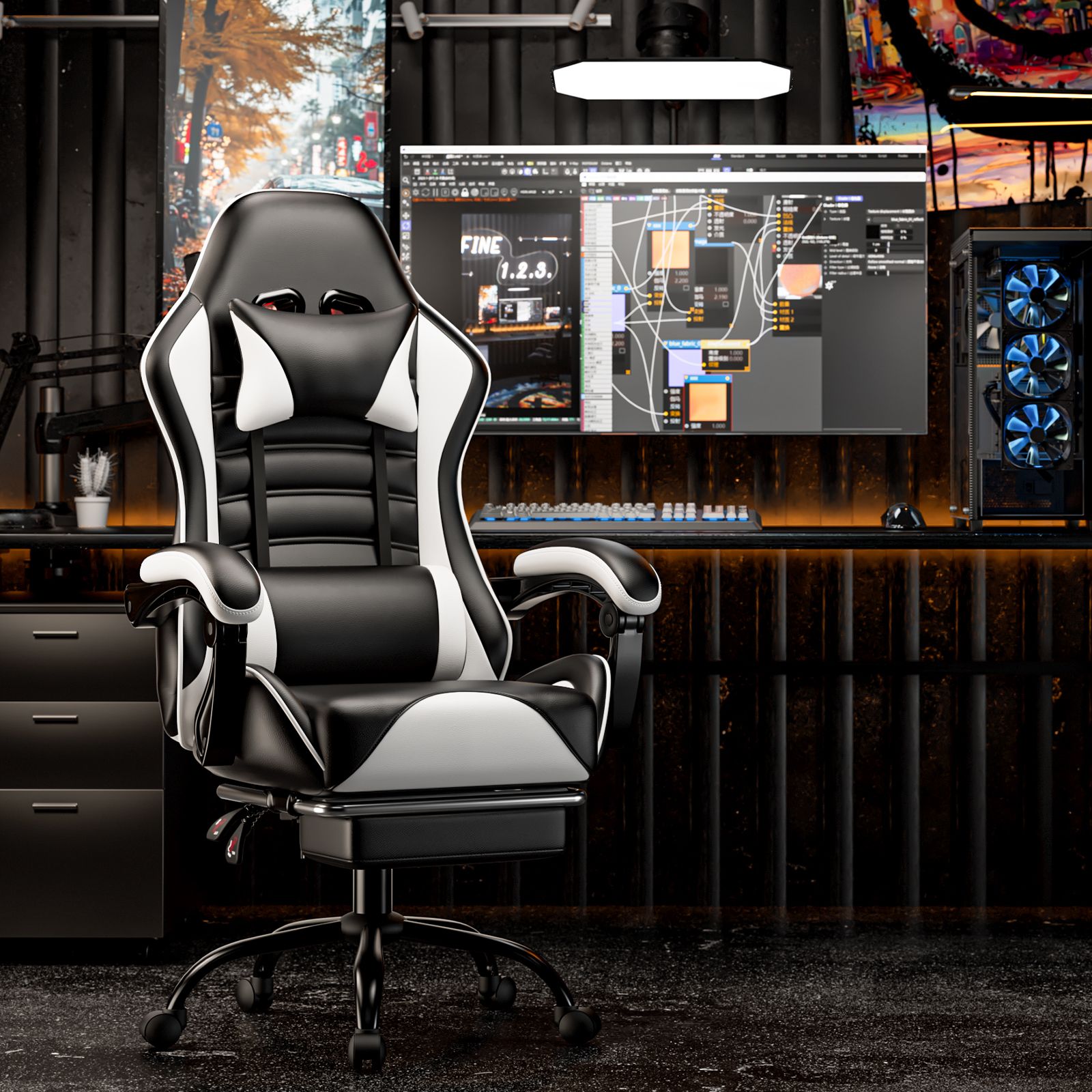 1.Computer gaming chair with premium pu Leather, handcrafted, waterproof, stain resistant, and easy to clean. The gaming desk chair has built-in fabric and memory foam to ensure that you can still provide better cushioning and support under prolonged use, giving you a comfortable sitting experience like a mattress or sofa.